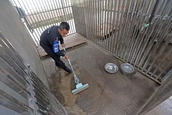 为减少病毒细菌入侵,降低警犬患病风险。每次外来客人参观来访结束后,警犬基地都会来一次彻彻底底的大消毒。