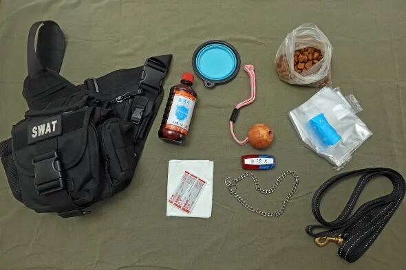 每次外出执行任务,警犬训导员所带的必需品