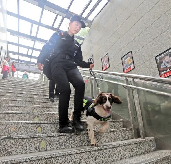 “让警犬适应行走在光滑的室内地面上或上下楼梯、敢搭乘电梯或者进入黑暗封闭环境,甚至从警用飞机上空降等等,没有对训导员的充分信任是做不到的。”苏柳月说,26岁的她也是地铁公安分局特警大队警犬训导员。