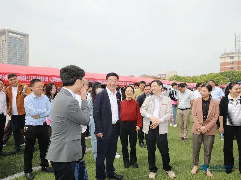 4月23日,江西省“千校万岗”就业行动暨南昌航空大学2024届毕业生春季双选会(第二场)在我校前湖校区室外足球场举行。本次活动由团省委、省国资委、省学联及我校共同举办,共青团江西省委副书记罗华,上饶市委常委、组织部部长任海斌,奉新县委常委、组织部部长严珏,学校党委书记李德平,党委常委、副校长熊震宇,党委常委、副校长江光亮出席。