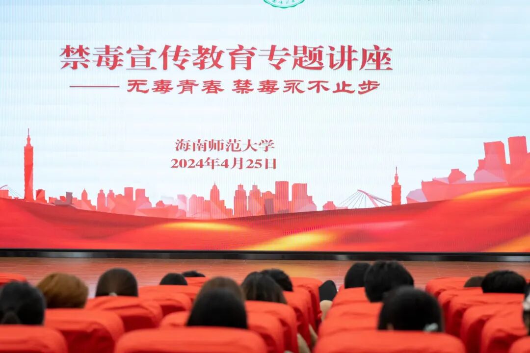 讲座特邀海南省公安厅禁毒总队负责人陈永辉同志主讲,他围绕当今海南禁毒的严峻形势、毒品的种类及危害、禁毒法律法规介绍、青少年滥用毒品原因及预防方法等方面,通过案例、图片、视频等方式,让与会师生形象地了解何为毒品,毒品对个人、家庭、社会的巨大危害,提高了师生辨别毒品的能力和防毒拒毒的安全意识,使“珍爱生命,远离毒品”的观念更加深入人心。