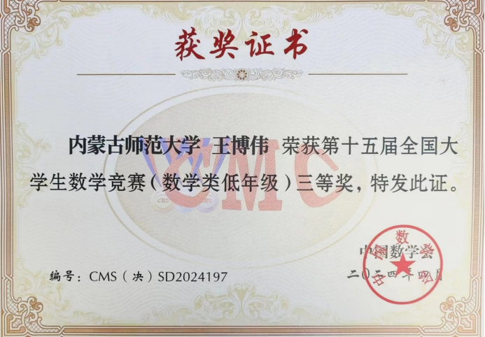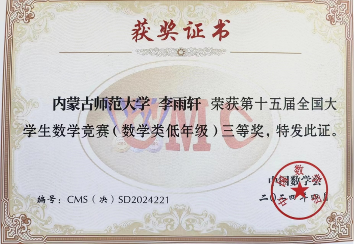 我校学子在2024年全国大学生数学竞赛中获奖