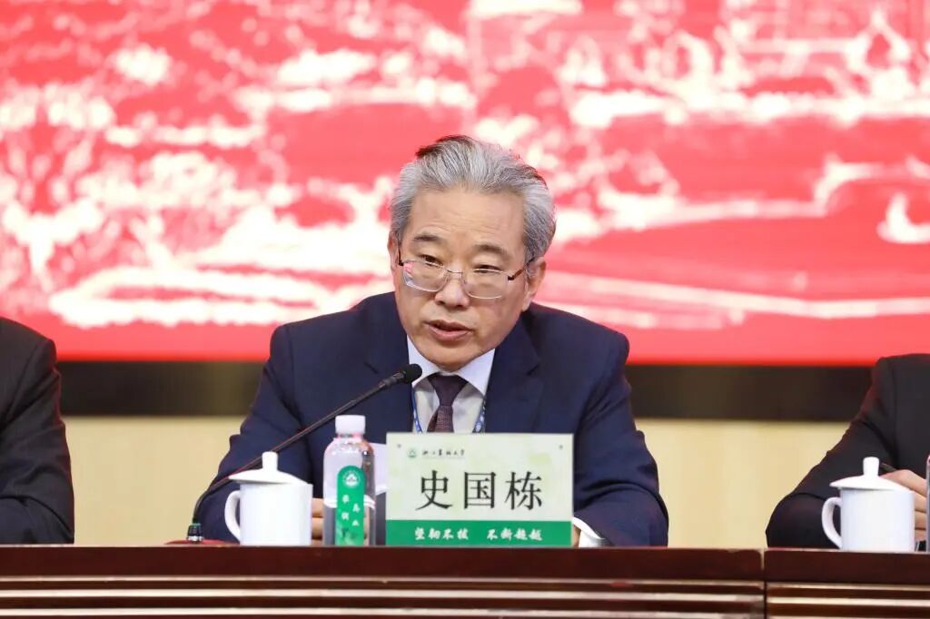 史国栋代表专家组向学校反馈审核评估总体考察意见。专家组充分肯定了我校推进本科教育教学改革与建设的多项举措和成效,认为学校围绕“能够担当民族复兴大任的具有生态文明意识、创新创业能力的高素质人才和区域现代农林业未来领导者”的人才培养目标,全面落实立德树人根本任务,本科教育教学成效显著。一是以“两山”理论为引领,新农科建设成效显著。优化调整专业结构,构建智慧农业等六大全产业链专业群;聚焦新农科“育人共同体”、教育联盟、实践教学高地建设和拔尖创新型人才培养,着力培养新型农林人才;创建“吴越劳动教育书院”等载体,构建以耕读教育为特色的劳动教育体系。二是践行“一懂两爱、一专多能”理念,定向农科生培养特色凸显。打造多元共育、融合共赢的“政校企”育人共同体,通过“四共”产教融合育人新机制,培养一流应用型人才。三是构建“一体两翼”创新创业教育体系,双创培养质量显著提升。全面实施“学科竞赛入课堂”,建立“一二三”立体型双创实训体系,促进专业教育和双创教育的深度融合。四是搭建产学研用资源共享平台,助力学生创新实践能力全面提升。打造区域共建共享新农科实践高地,获批3个省级重点支持现代产业学院,打造具有浙江辨识度的教育赋能乡村振兴示范样板。五是持续深化“生态育人 育生态人”办学理念,浙农林大模式示范效应凸显。专家组认为,对照学校建设区域特色鲜明的高水平生态性研究型大学建设目标,需要聚焦以下问题加大改进提升力度。一是进一步强化落实高质量人才培养的保障力度;二是将学校优势特色充分融入人才培养全过程;三是强化文理工农之间专业结构的优化布局和专业内涵建设;四是完善青年教师培养体系;五是进一步强化教学资源建设;六是进一步健全质量保障体系和质量文化建设。