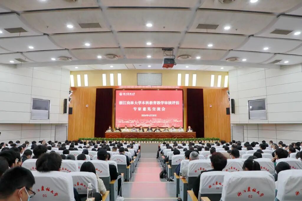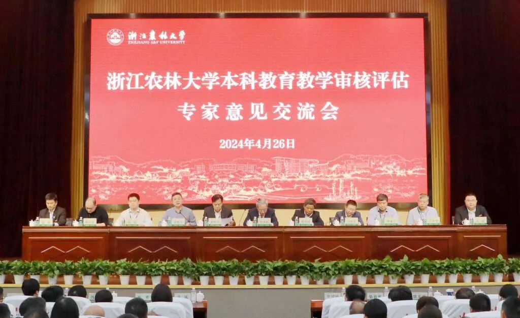 4月26日下午,浙江农林大学本科教育教学审核评估专家意见交流会在东湖校区图书馆第一报告厅举行。专家组组长、常州大学原党委书记史国栋,专家组副组长、北京林业大学原副校长骆有庆和浙江水利水电学院原院长陈光亭以及专家组成员,浙江省教育厅高教处二级调研员王国银,浙江农林大学党委书记朱斌、校长沈希及党政班子全体成员出席交流会。浙江省教育考试院党委委员、纪委书记陈煜军主持会议。