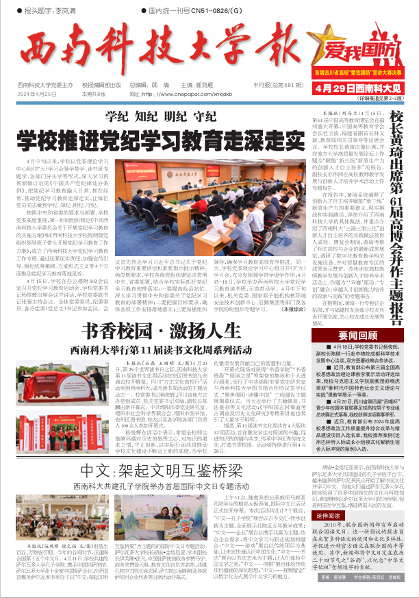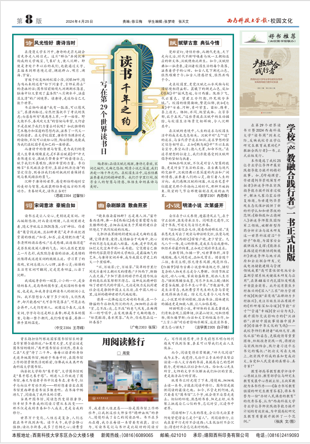 https://www.xepaper.com/xnkjdxb/html/2024-04/25/content_66268_17361870.htm3. 书香校园·激扬人生