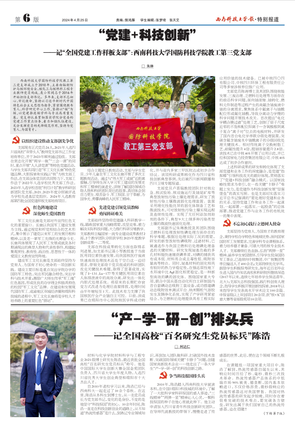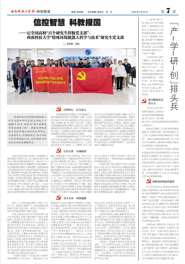 ——记全国高校“百个研究生样板党支部”:西南科技大学“特殊环境机器人科学与技术”研究生党支部