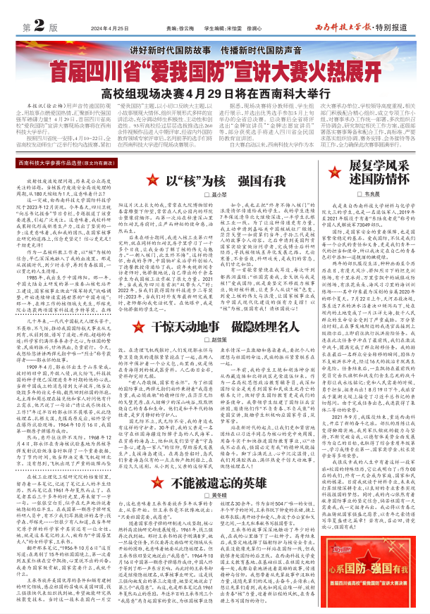 https://www.xepaper.com/xnkjdxb/html/2024-04/25/content_66269_17361879.htm5.展复学风采 述国防情怀