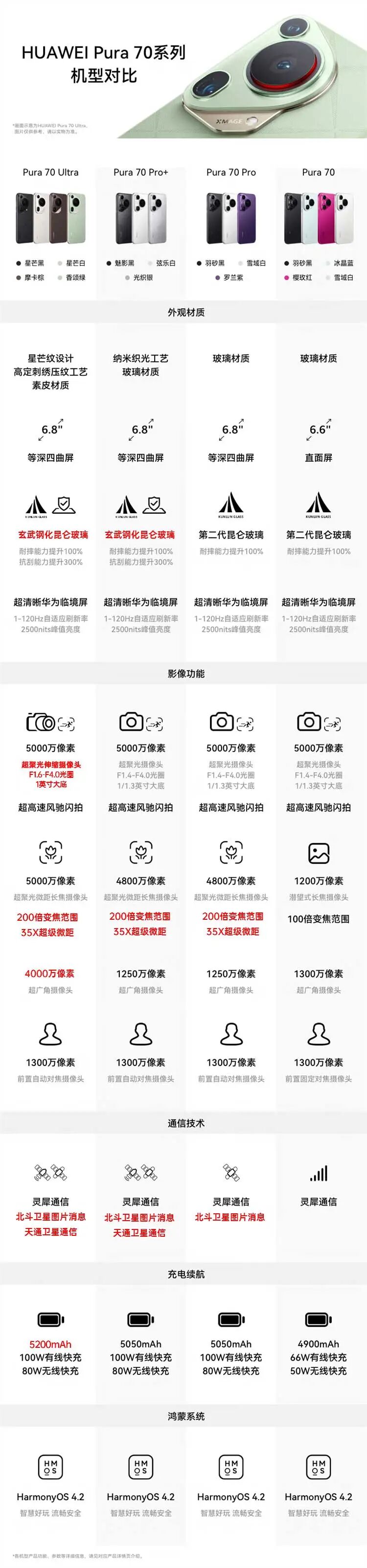 ·Pura70 Pro由于货源紧张,到货时间尚不确定,想要马上体验新机的推荐您购买Pura70 Pro+,它在Pro版本的基础上,增添了卫星通讯功能,屏幕采用更耐摔耐磨的玄武钢化玻璃,运存也从12GB升级至16GB。