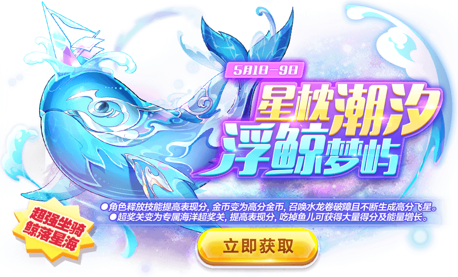 3、活动期间,5月3日登陆酷跑国,可领取蠃鱼,富贵龙鱼,鎏金海龙,北冥巨鯤体验一天;