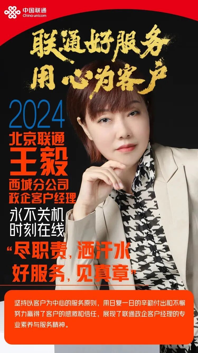王毅坚持以客户为中心,她用日复一日的辛勤付出和不懈努力赢得了客户的感激和信任,展现了联通政企客户经理的专业素养和服务精神。