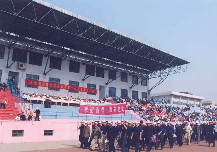 集团公司第二十一届职工运动会在市体育场举行,场面盛大。