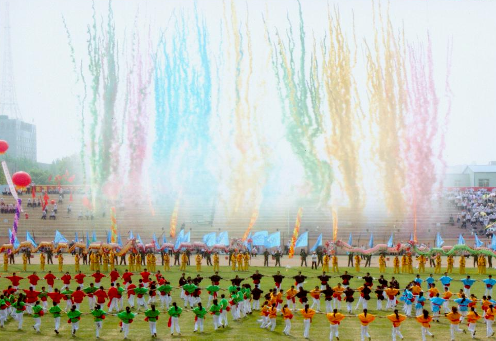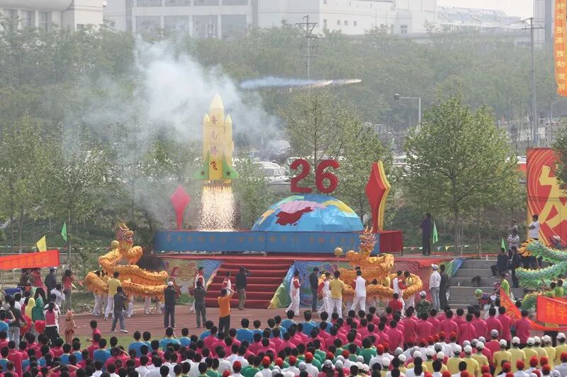 第二十六届运动会举行,除了热闹的团体操表演,还有手持运动会圣火的火炬手,他们一起点燃运动会主火炬,鲁南,腾飞!