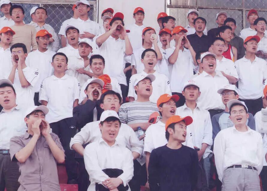 第十九届运动会举行,看台上的观众热情高涨,摇旗呐喊,为选手助威,为同事鼓劲!