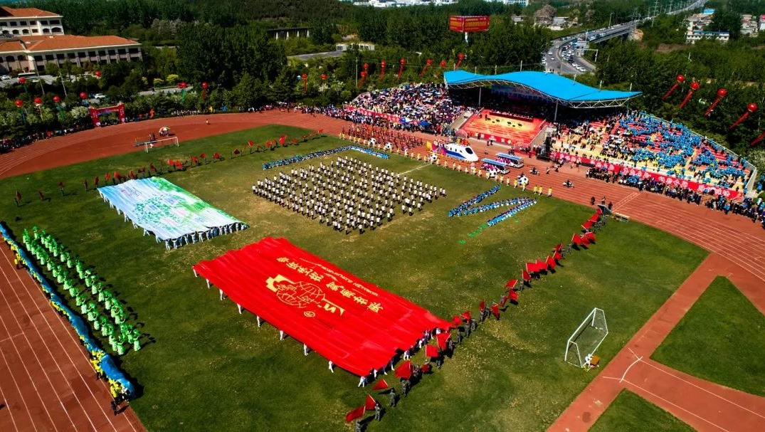 当摄影师的无人机飞到体育场上空,我们都被这盛大的场景震撼了,整齐的队伍,激昂的音乐,响亮的口号,都在昭示着实现“千亿鲁南 百年品牌”的决心!