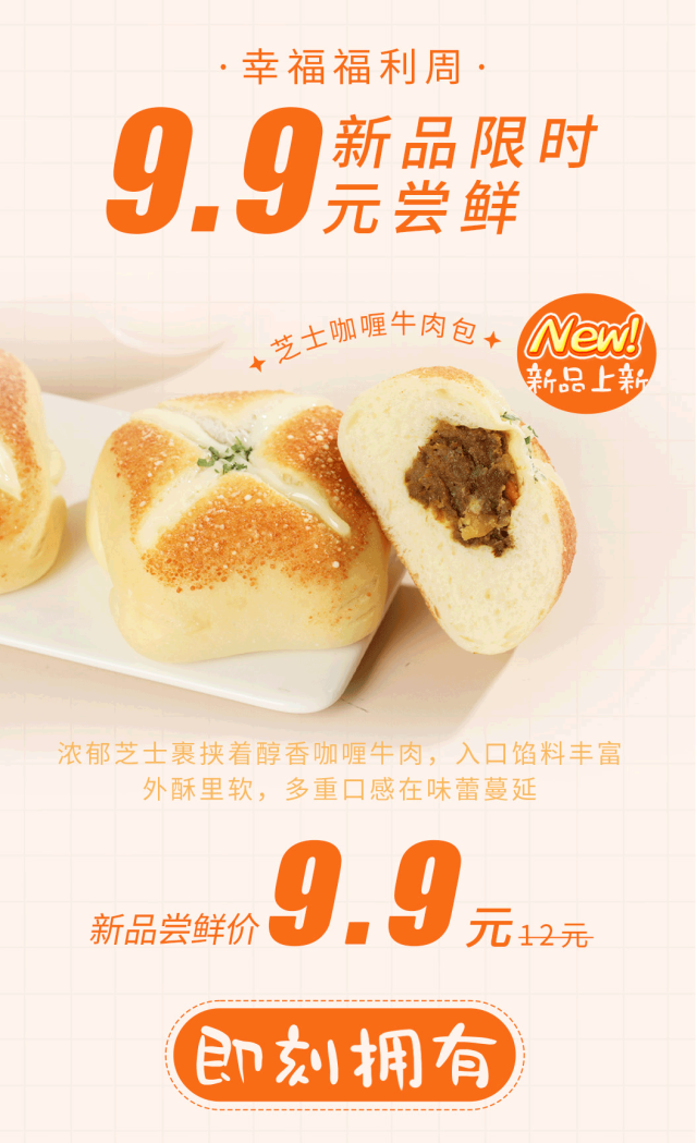 摘要:幸福福利周,天天8折吃不同产品!芝士咖喱牛肉包上,点我免费吃