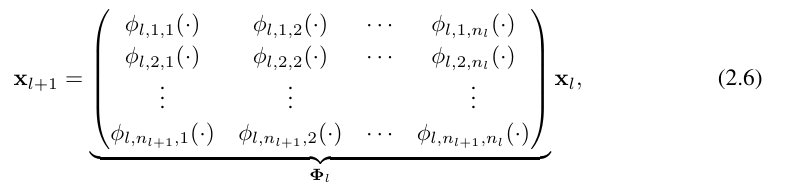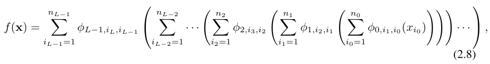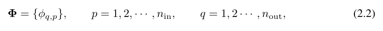 上述方程也可以写成类似于方程(2.1)的形势,假设输出维度 n_L = 1,并定义 f (x) ≡ KAN (x):