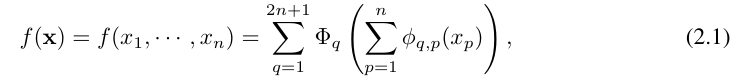 假设有一个监督学习任务,由输入输出对 {x_i , y_i} 组成,研究者希望找到一个函数 f,使得对于所有数据点 y_i ≈ f (x_i) 。方程(2.1)意味着,如果能找到适当的单变量函数和