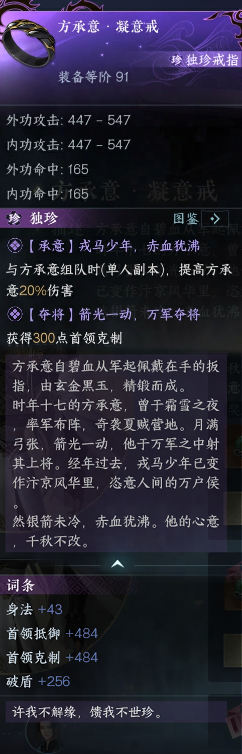 听小侯爷讲完昔日故事后,他还会为你送上一枚独珍戒指【方承意·凝意戒】。银箭未冷,赤血犹沸。他的心意,千秋不改。