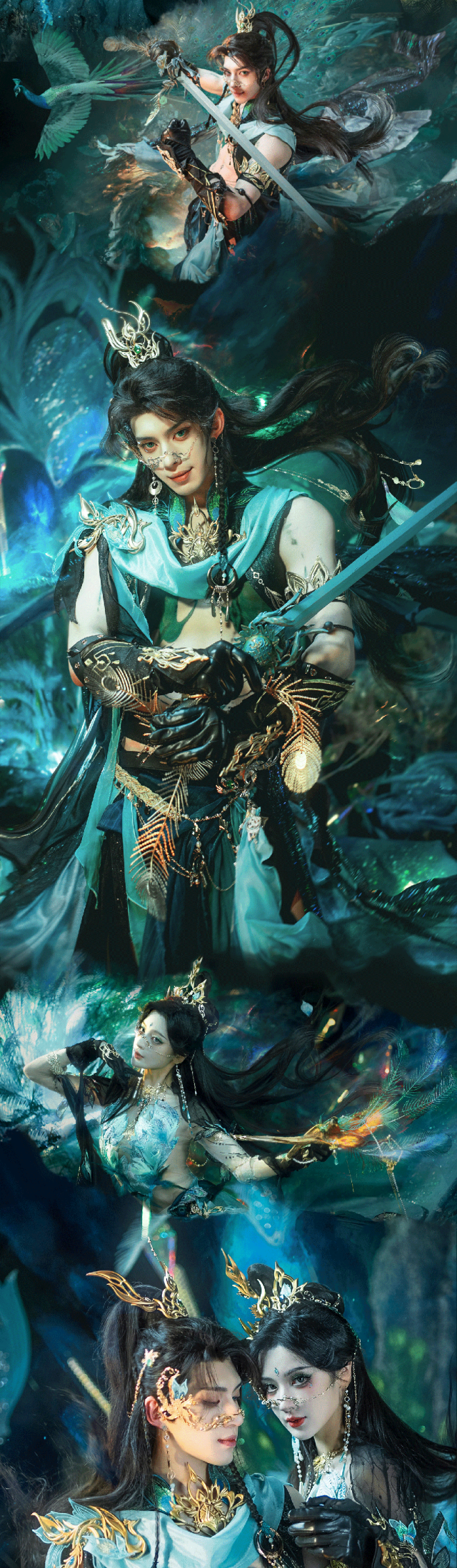 什么?各位同门还觉得看不够?没关系,小寒这里还有大招!coser巴旦木、coser蒲一彤、coser水冰月和coser赵喵喵喵喵四位老师也穿上了这款灵气十足的新衣服,为大家展现出孔雀之美!