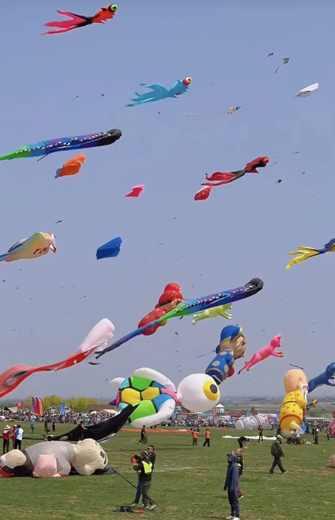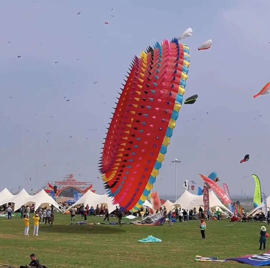 要说最近有什么好玩的,潍坊风筝节绝对算一个,鉴于其脑力含“卷”程度太高,网友还给起了个别名“人类想象力大赛”。4月19日晚,第41届潍坊风筝节如期在潍坊奥体公园体育场开幕,各种形制共计1093只风筝“筝”奇斗艳——总长75米需要18个人协作放飞的“港珠澳大桥”风筝、巨大“屁”字风筝、盼盼自家“老板”上阵风筝、真顺“风”快递风筝,一个赛一个的强。 一、品牌类