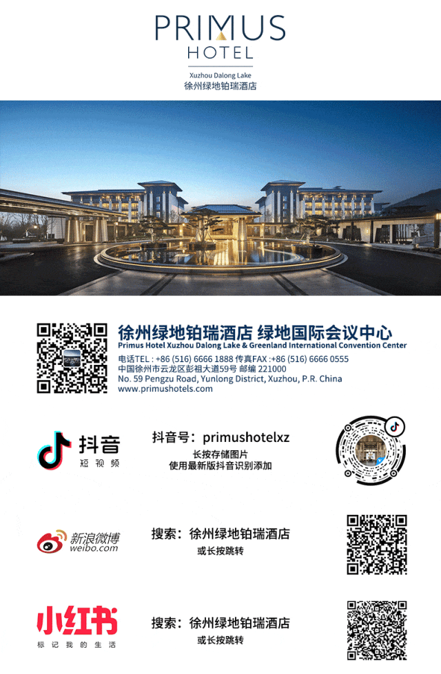 本文内容来源于公众号: 徐州绿地铂瑞酒店 ,请扫码查看原文。