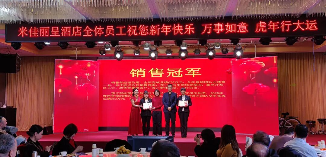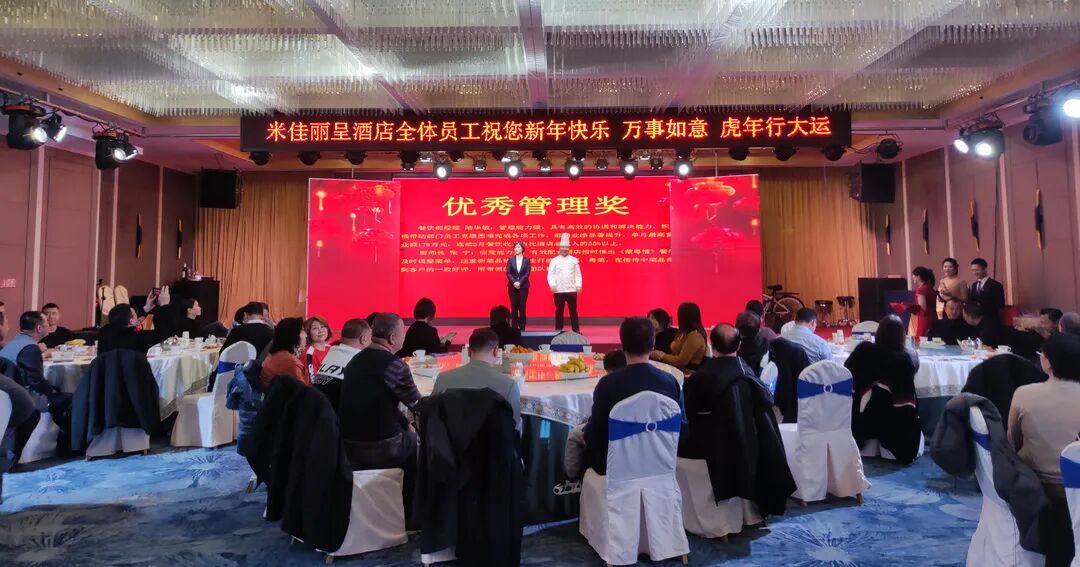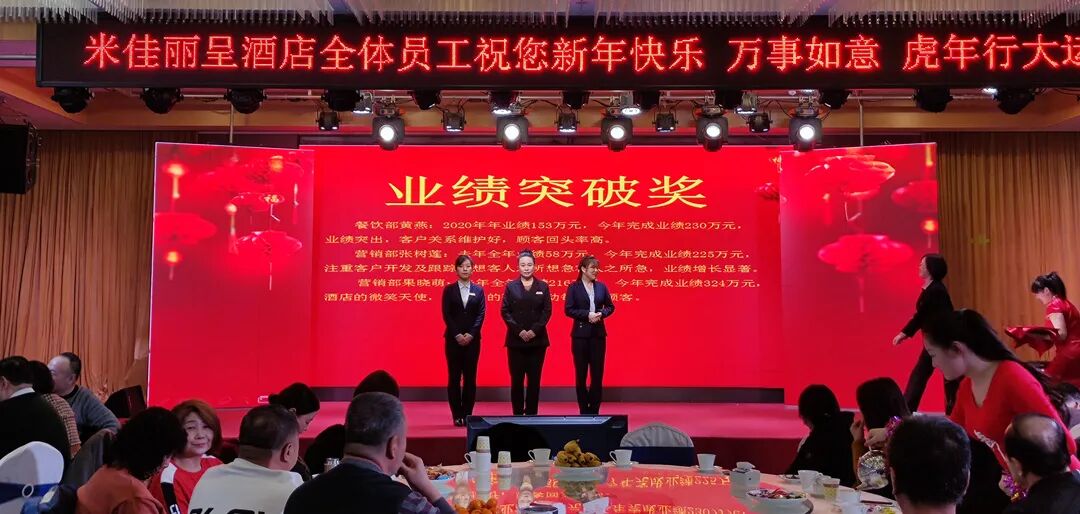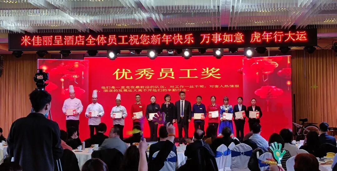 首先开启的是2021年度工作总结表彰大会,大会特别邀请北京内蒙古企业商会、北京达拉特商会各位领导以及多年以来一直给予酒店关怀与帮助的各位嘉宾以及酒店全体同仁共计300余人参加会议。全体员工齐聚一堂,总结过去一年的成绩,共同展望美好未来。大家凝心聚力,一起勾勒未来愿景目标,携手开创更加辉煌的明天。