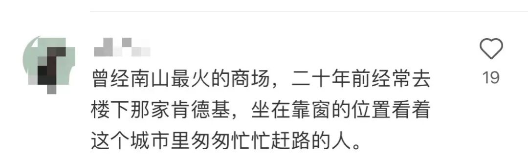 得知海雅百货要拆建,蒲女士很是感慨,“曾经南山最火的商场,二十年前经常去楼下那家肯德基,坐在靠窗的位置看着这个城市里匆匆忙忙赶路的人”。不过,对于海雅百货的没落,她也早有预感。