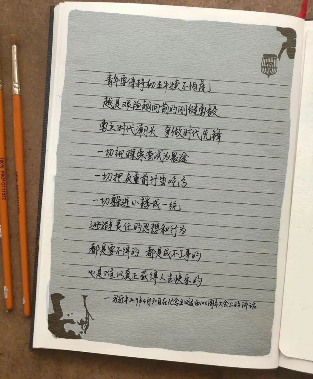 笔墨出自:习近平总书记在五四运动一百周年大会上的讲话