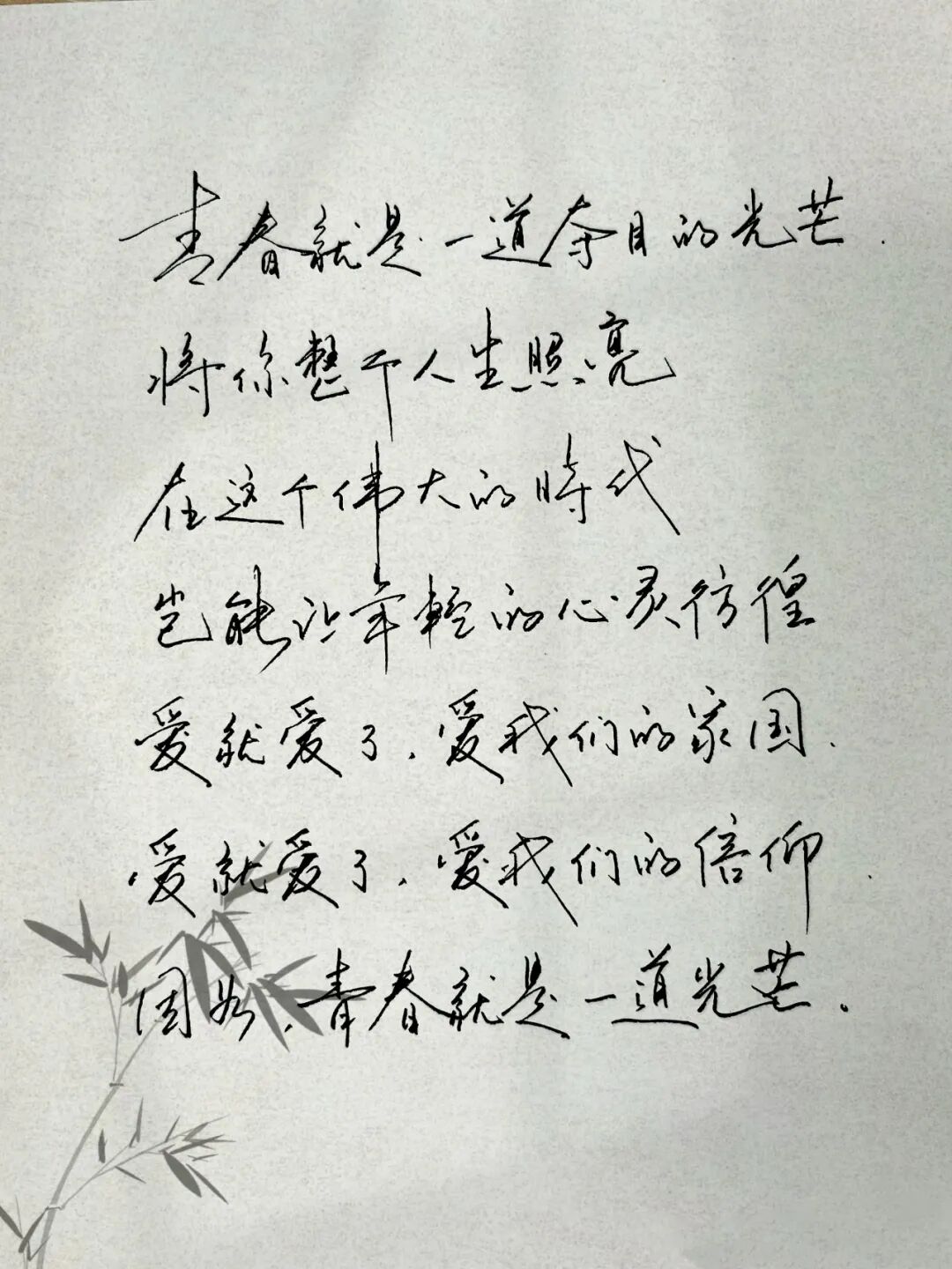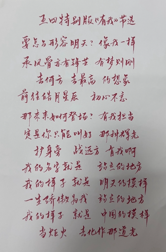 笔墨出自:学习强国2023年5月3日视频“奋斗者正青春!五四特别版《有我》”,作词:唐恬/闫光宇
