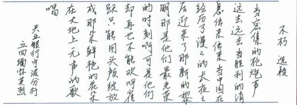 兴声:跟着诗人的笔,我看见那血染的泥土、山岗与军装,在那段硝烟弥漫的历史里,无数新青年走上战场,在血与火的洗礼中前赴后继。如今,站在蓝天之下,我是成长在新中国的“兴青年”,感受指尖的春风,又想起那些模糊的背影和青春的面孔,当风拂面而来,树梢传来簌簌的响动,或许是他们在向新时代招手。