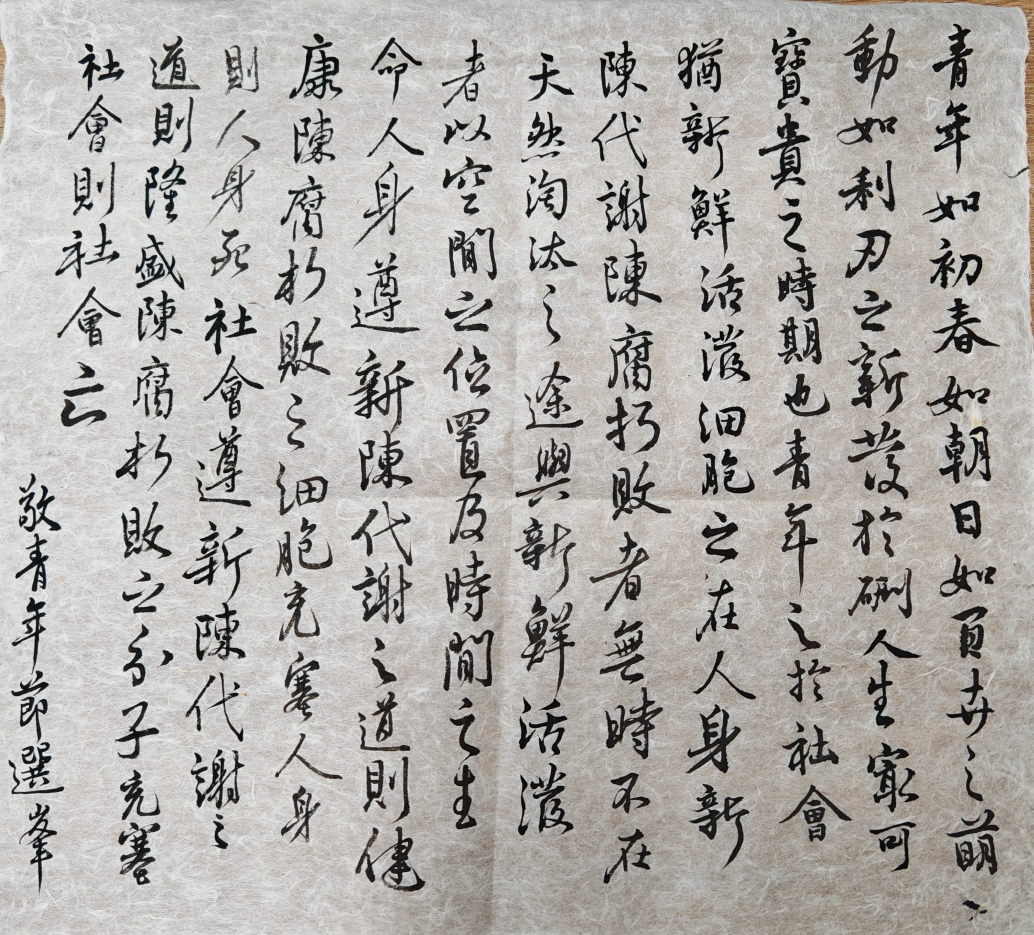 笔墨出自:《新青年》杂志创刊词《敬告青年》,作者:陈独秀