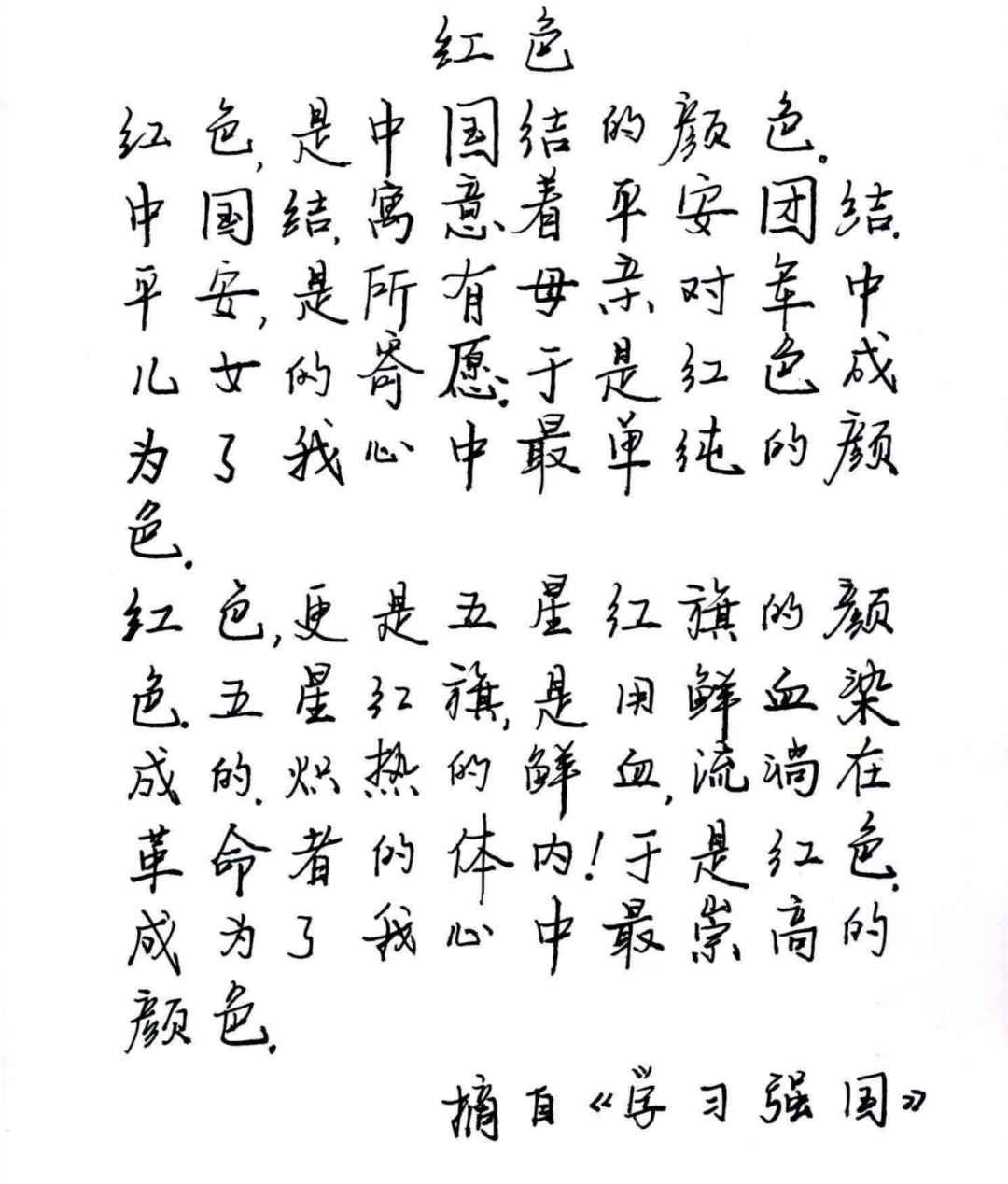 笔墨出自:学习强国2021年7月2日“第13届大广赛诗歌赛等级奖获奖作品·文案类三等奖”南宁职业技术学院学生作品《红色》