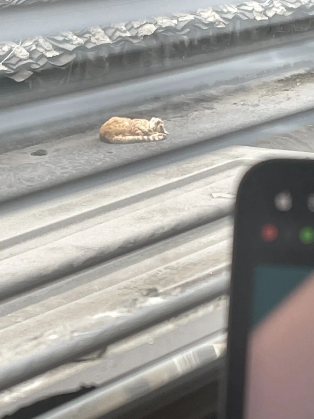 前几天,王国帆在咖啡厅办公,看到窗外在屋檐上晒太阳的小猫