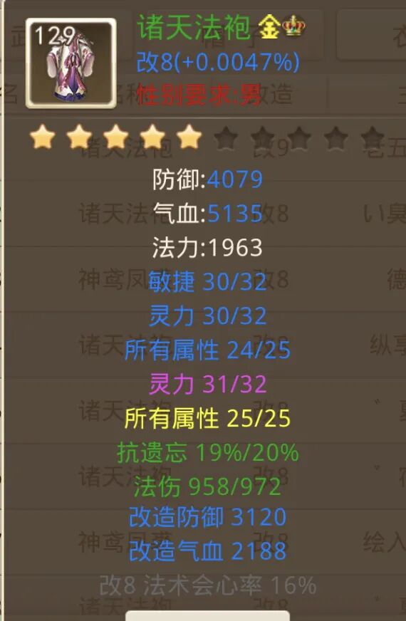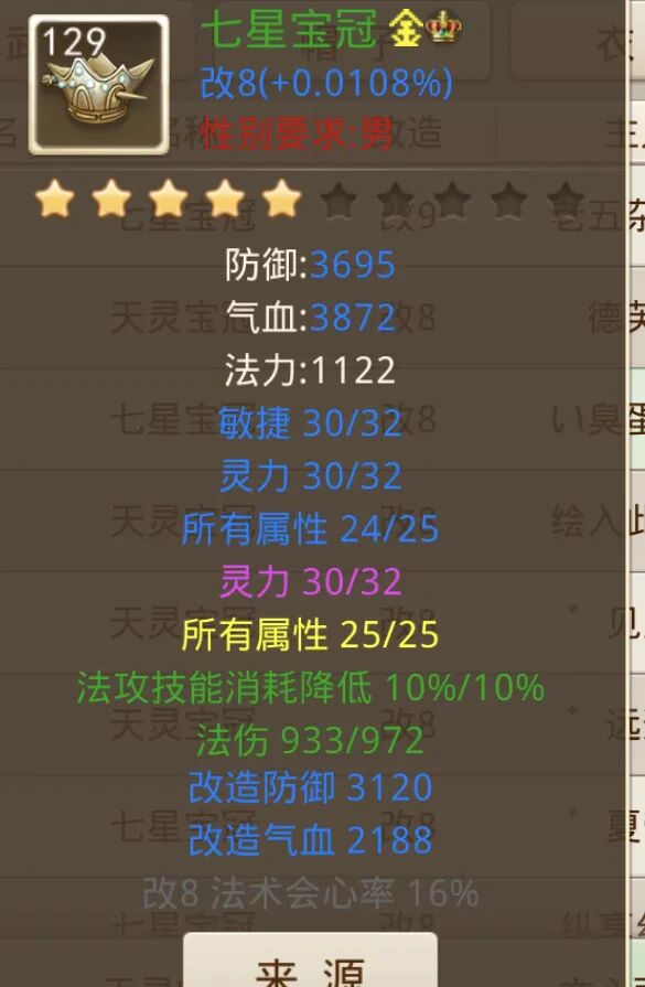 强火法伤害10%、暗伤很高,武器无限接近于完美,衣服属性也不错,鞋子概率躲避攻击29%,暗伤也相当高。最让人眼前一亮的是头盔,它的绿属性居然是法攻技能消耗降低10%。如果道友每次法攻需要消耗10000法力,有了这个属性之后,每次施法都只需要消耗9000的法力,每次都省10%的法力,时间一长,积少成多,也是省下了一大笔开销。