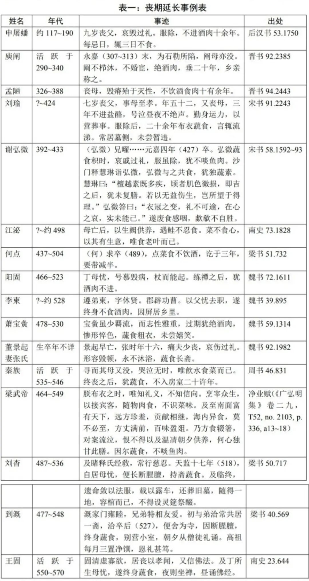 早期的案例如申屠蟠、庾阐等人,没有佛教信仰,他们的行为是儒学价值观的彰显。在梁武帝素食改革的前后,或者说在梁武帝崇佛的大环境里,儒士在漫长的服丧生活里,自觉地开始加入坐禅、诵经等佛教仪式,推移之迹宛然。