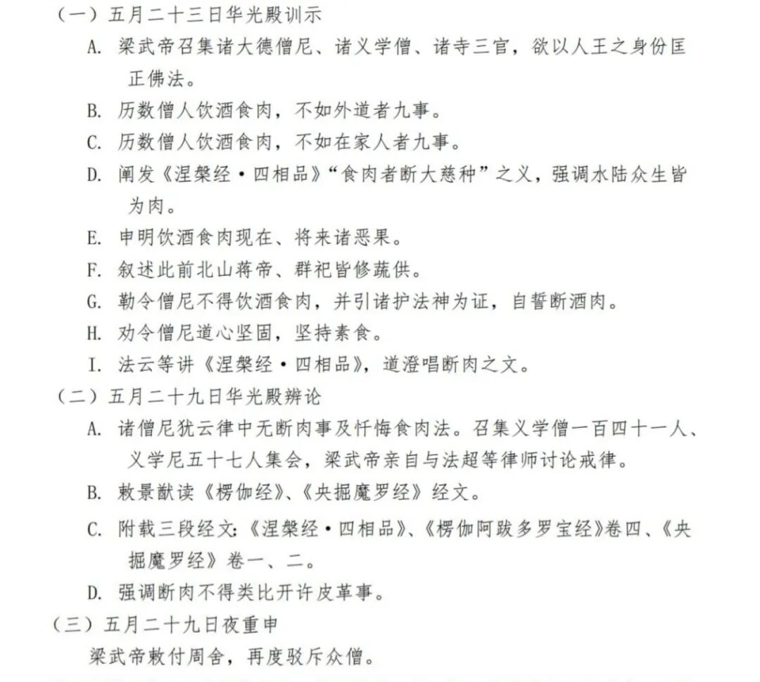 梁武帝推动的僧团素食化改革,全部的记载都见于《广弘明集》卷二六所收《断酒肉文》。我们把它分为三个段落,见表1。