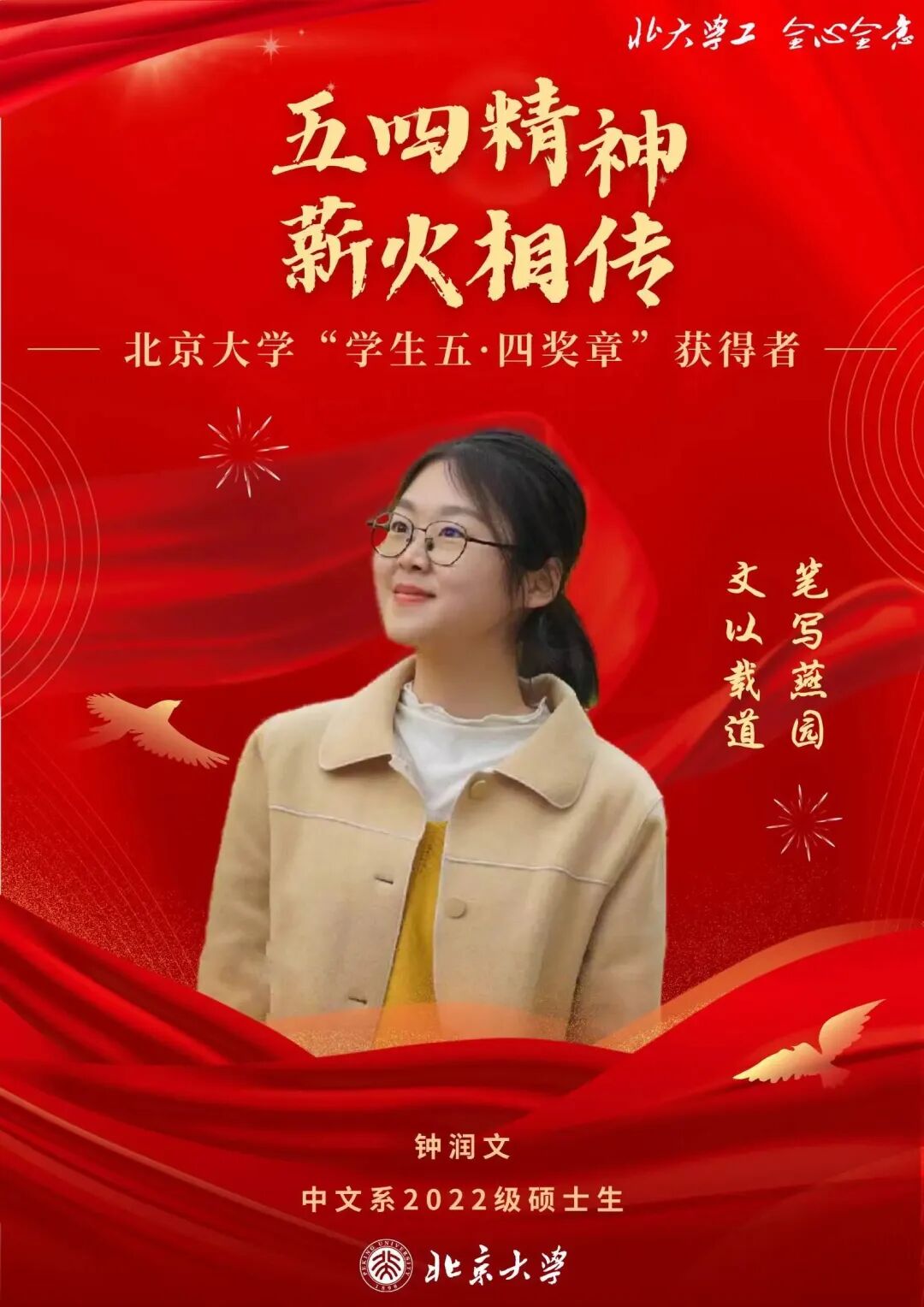 北大“学生五·四奖章” | 钟润文:笔写燕园,传播中华优秀传统文化