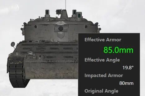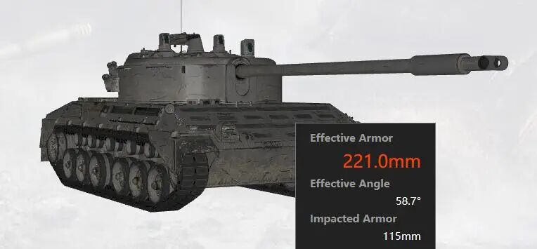07RH主战方案的车体拥有一定防御力。坦克的首上装甲板厚度足有115毫米,而且角度较大,此处对AP弹的等效足有190毫米左右。坦克车体侧面装甲板厚度达到了75毫米,配合额外的倾斜角度,在实战中小角度侧面对敌效果不错。不过该车没有装甲侧裙板,需要控制好角度,来袭炮弹角度过大就极易被击穿。它的装甲有所欠缺,不过有时还是可以帮助您抵挡一部分炮弹。