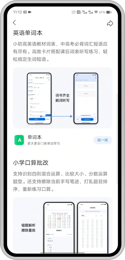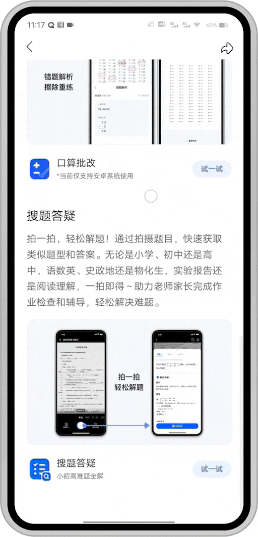 *口算批改当前仅支持安卓手机
