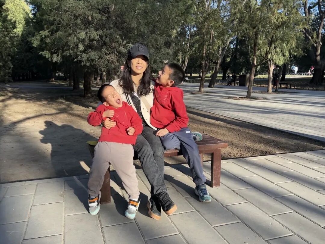 含含与两个儿子的合影