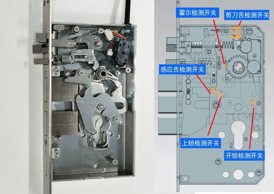 在硬件上,美的智能门锁发挥科研技术优势。如防暴力开锁功能,其中全自动锁体涵盖:小舌、剪刀舌、主锁舌、电机等均要通过防撬检测;并且采用高强度铝合金面板,主控应用金属压铸件保障;采用公安部认证的C级锁芯,更获得《剪刀舌关门自锁紧设计》等专利。