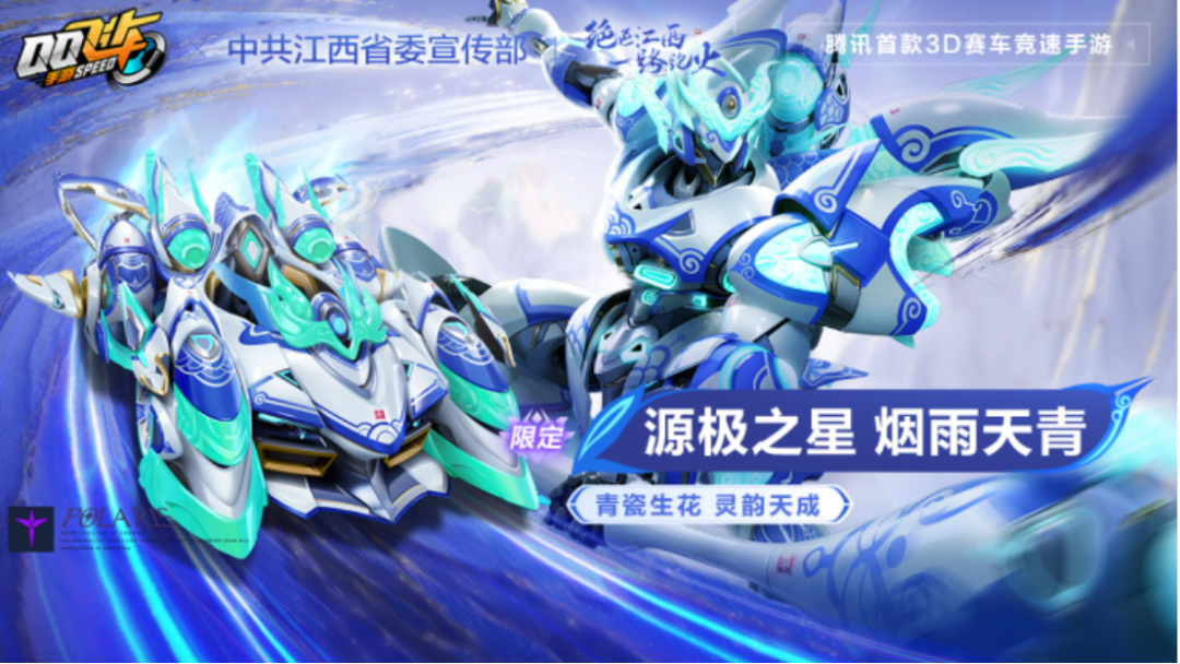 5月12日-5月19日,可升阶青花瓷主题机甲皮肤源极之星 烟雨天青返场寻宝-星梦祈愿,车手们可以使用机甲源石(售价30钻石/个)进行抽取,有机会获得机甲皮肤源极之星 烟雨天青、神曜青凌套装、宠物瓷韵圣使、宠物皮肤瓷韵圣使 炎融等奖励!