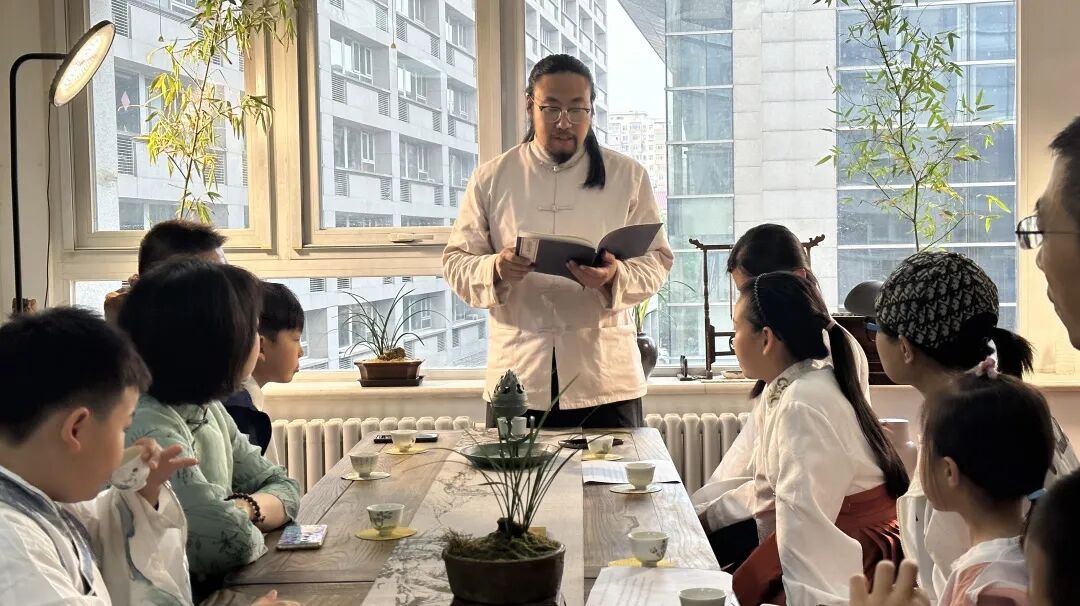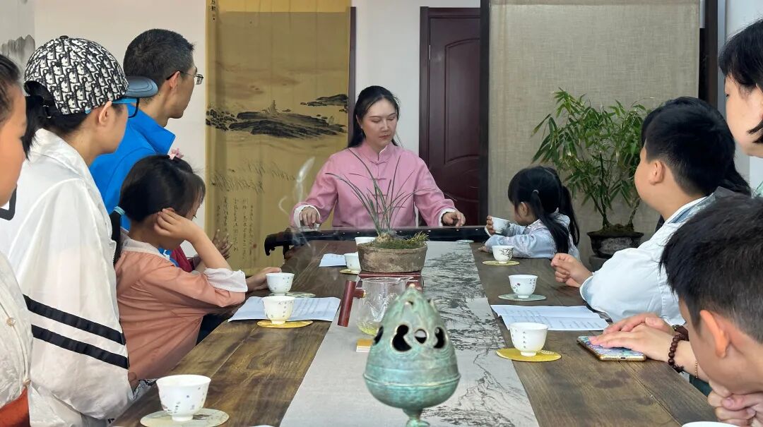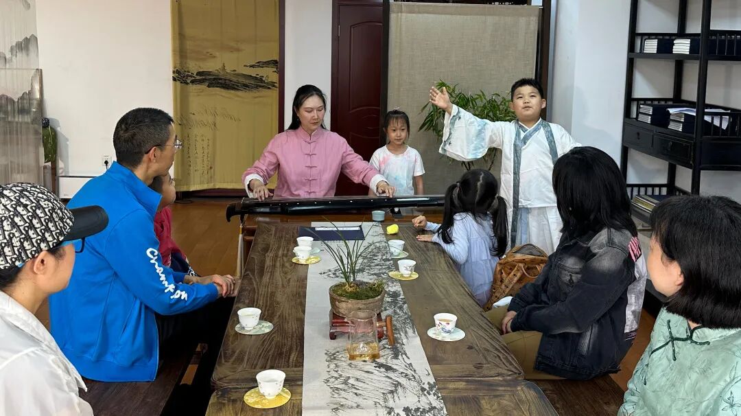 随后,六组家庭分别朗诵了诗词《咏二十四节气诗·立夏四月节》,古琴艺术非遗传承人江旖飞老师配合诗词弹奏《石上流泉》琴曲。