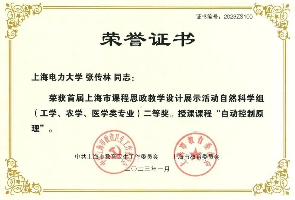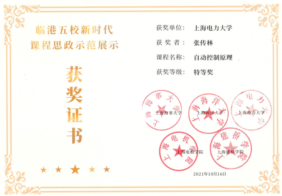 团队负责人牵头的《自动控制原理》课程获评国家级一流本科课程、上海市课程思政示范课程;团队成员获评上海市教学成果奖一等奖、上海市课程思政教学名师等,并斩获多项课程思政示范成果奖项。