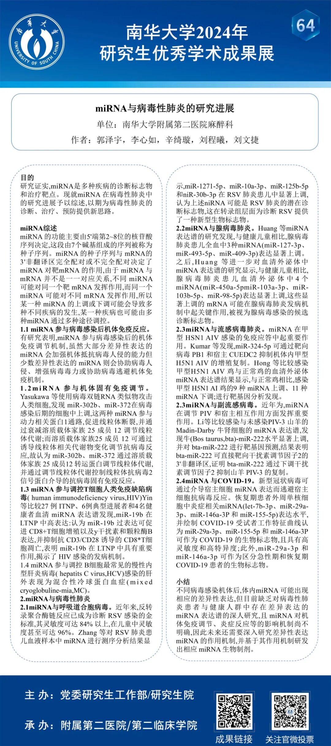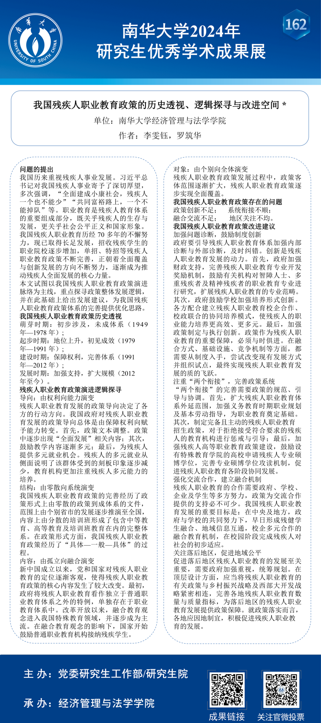 179份研究生优秀学术成果墙报将予以展示