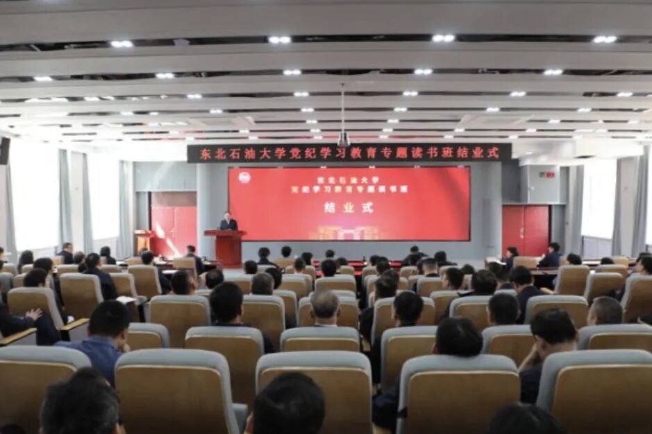 4月25日,东油党纪学习教育专题读书班结业式在学校1H211会议室举行,校党委班子成员及全校处级领导干部参加,校党委书记付晓飞主持并作讲话。