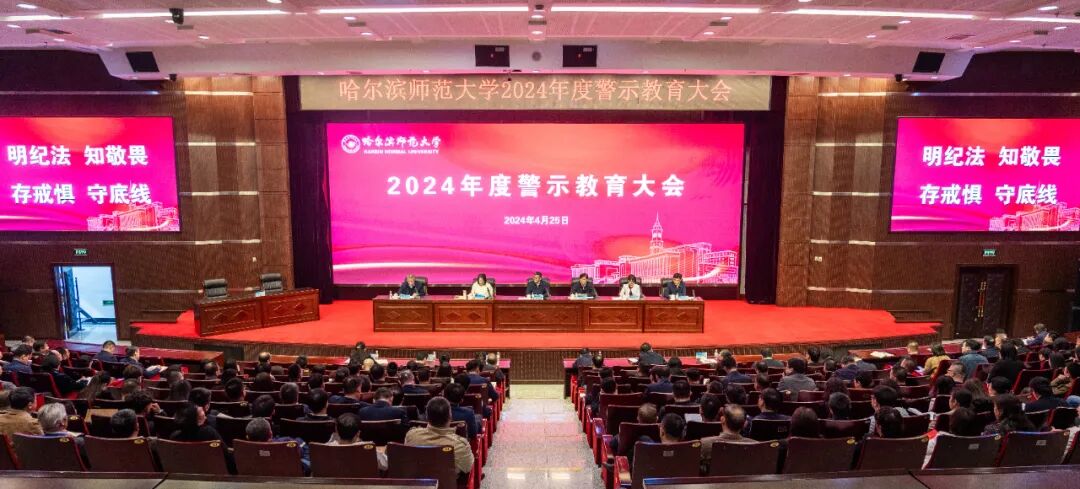 (李卿博/文)为贯彻落实党中央和省委关于全面从严治党的部署要求,深入推进党纪学习教育,充分发挥反面典型的警示教育作用,用身边事教育身边人,切实增强党员领导干部和教职工拒腐防变能力,4月25日,我校在科学会堂二楼报告厅召开2024年度警示教育大会。校党委书记孙立军出席并讲话。学校党政领导班子成员出席会议。会议由党委副书记李庆霞主持。 会上,党委常委、纪委书记、省监委驻哈尔滨师范大学监察专员姜国庆通报了2023年以来学校纪委查处的7起发生在身边的违纪违法典型案例,通过以“身边案”警示“身边人”,不断提升警示教育活动实效,切实增强广大教职员工廉洁从政、廉洁从教意识。 孙立军就加强党风廉政建设和师德师风建设提出要求。他指出,全校各级党委要坚决担起全面从严治党主体责任,各级党委书记要切实履行第一责任人职责,班子其他成员落实“一岗双责”,努力形成齐抓共管的强大合力。要强化党纪学习教育,以学习贯彻新修订的《中国共产党纪律处分条例》为契机,推动党内法规学习常态化制度化。要坚持从严要求、从严管理,发挥基层党组织战斗堡垒和党员先锋模范作用,运用好监督执纪“四种形态”,尤其是“第一种形态”,对苗头性、倾向性问题及时批评教育,真正把作风建设融入日常、抓在经常。要坚持系统施治,加强新时代廉洁文化建设,强化师德师风教育,杜绝教育“微腐败”,深化家庭家教家风建设,坚决铲除作风问题滋生土壤。 孙立军强调,要结合深化能力作风建设“抓基层、打基础、强落实、见实效”活动,在抓“常”和“长”上下功夫。面对当前党风廉政建设、师德师风建设和反腐败斗争的新情况新问题,全体党员、干部,尤其是年轻干部,必须时刻保持头脑清醒,以党章为纲、以准则为绳、以条例为戒,发扬彻底的自我革命精神,树立正确的权力观,用权彰显公正,干事出于公心,始终坚持以师生为中心的发展思想,带头落实习近平总书记关于“要习惯过紧日子”要求,严格践行廉洁自律各项规定,以典型案例为镜鉴,心有所畏、言有所戒、行有所止,做好学校高质量发展的“主力军”和政治生态建设的“护林员”,为“国内一流师范大学”建设作出新的更大贡献。 副处级及以上干部、纪委办公室全体人员、全体辅导员参加会议。我校党委理论学习中心组开展2024年第四次集体学习暨巡视整改专题民主生活会会前集中学习