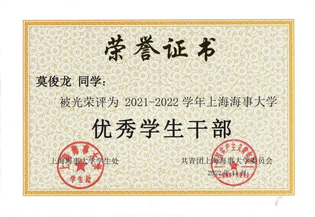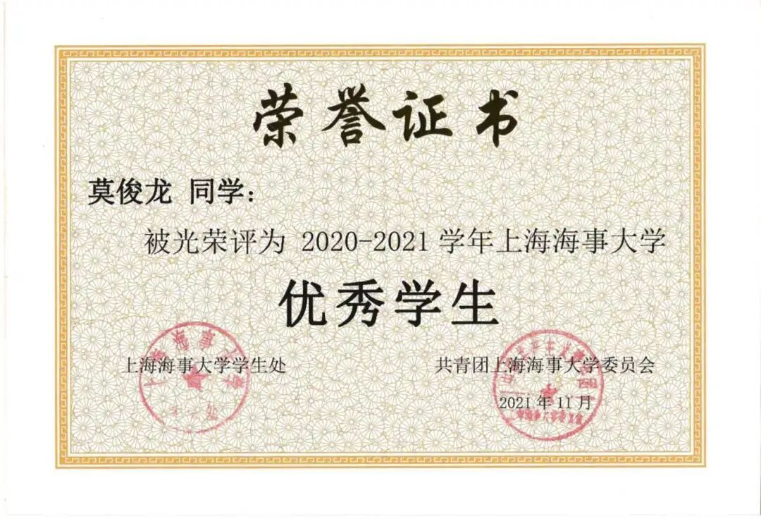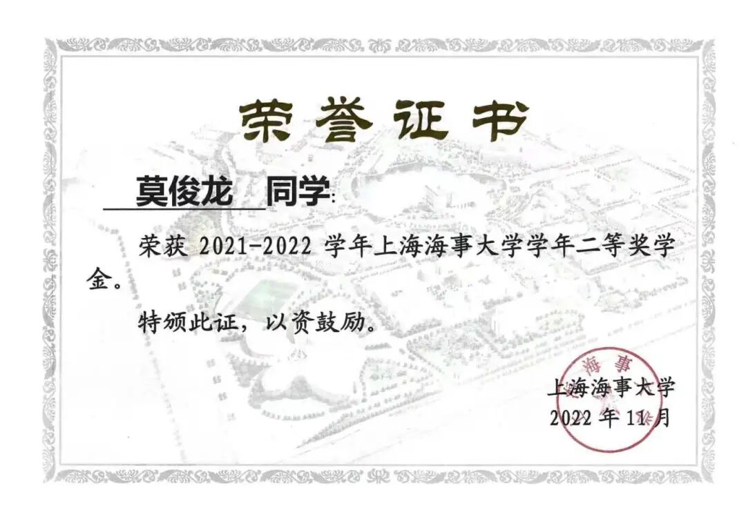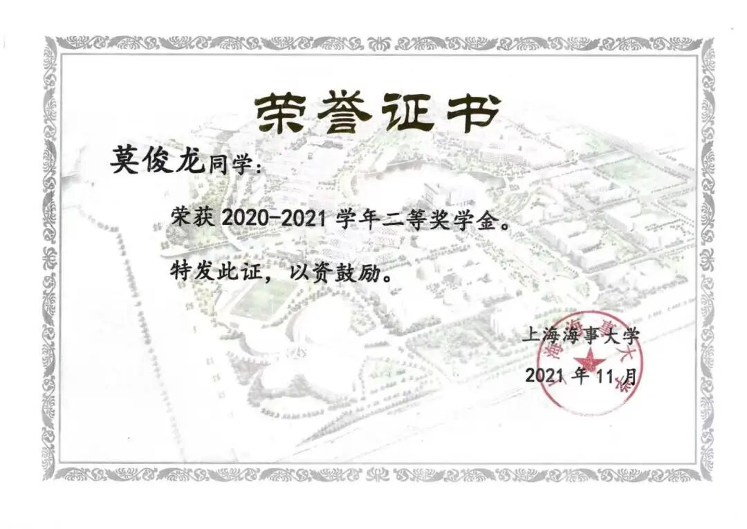 2020-2021、2021-2022、2022-2023学年 上海海事大学“二等奖学金”