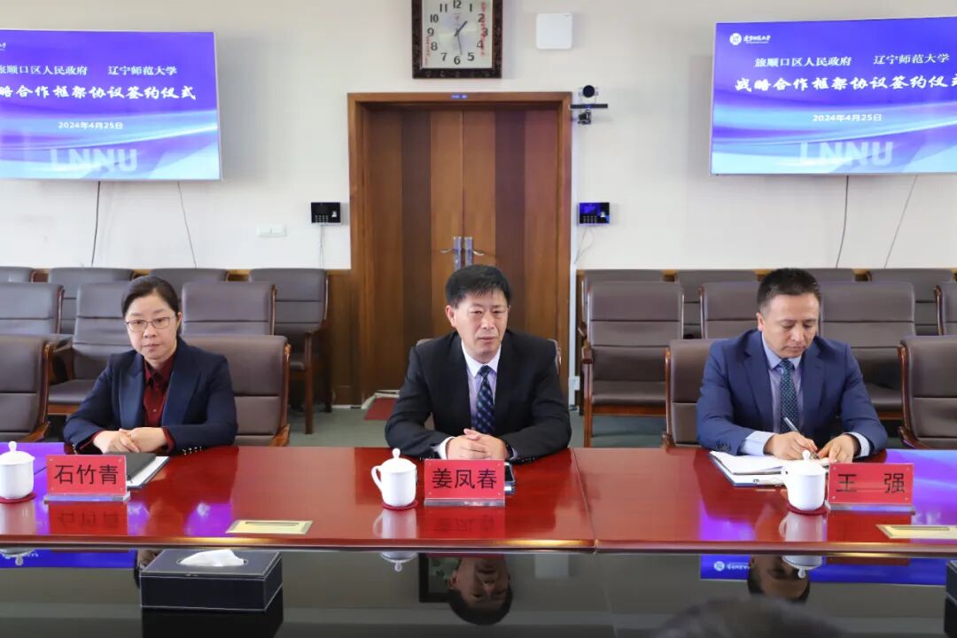 4月25日下午,旅顺口区人民政府与辽宁师范大学校地战略合作签约仪式在我校黄河路校区主楼301会议室举行。校长姜凤春、副校长石竹青,旅顺口区委书记李井山、副区长李云虹出席签约仪式,我校及旅顺口区相关负责同志参加仪式。