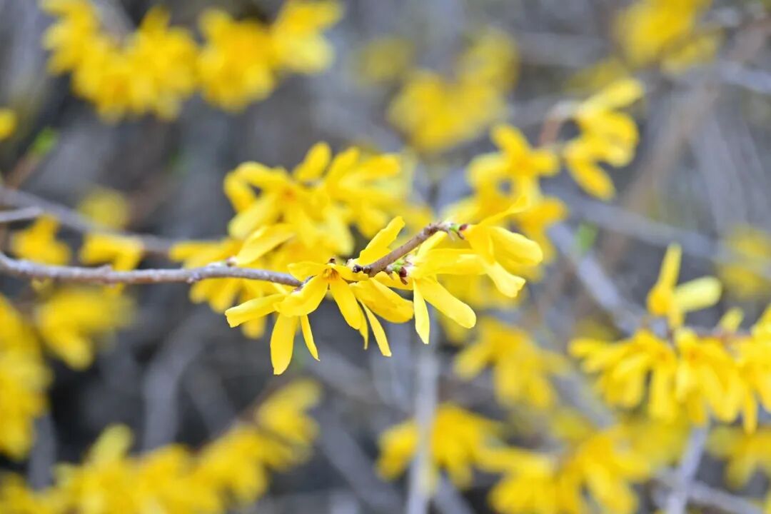 千步连翘不染尘,花开染金笑迎春